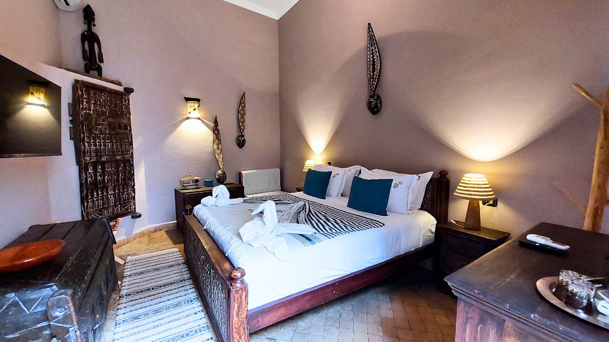 L’aspettativa generale del turista è di vivere un’esperienza da mille e una notte all’interno di un Riad. E’ un immaginario collettivo molto forte. In questo Riad si è scelto di mantenere elementi della struttura originale giocando con contaminazioni provenienti da luoghi diversi del continente africano cerando un mix di suggestioni culturali ben riuscito. Per questo motivo se vuoi alloggiare in un riad di Marrakech, crediamo sia importante che tu conosca i punti forti di questa struttura.