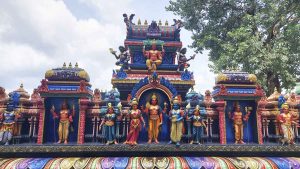 La montagna come sfondo, centinaia (272) di gradini colorati che entrano all’interno di essa e una altissima statua dorata sono il colpo d’occhio di questo luogo. La statua è quella del Signore Muruga, Dio indù della guerra, figlio di Shiva. È stata messa qui solo nel 2006 e con la sua altezza di 42, 7 metri si dice che sia la statua più imponente del mondo.